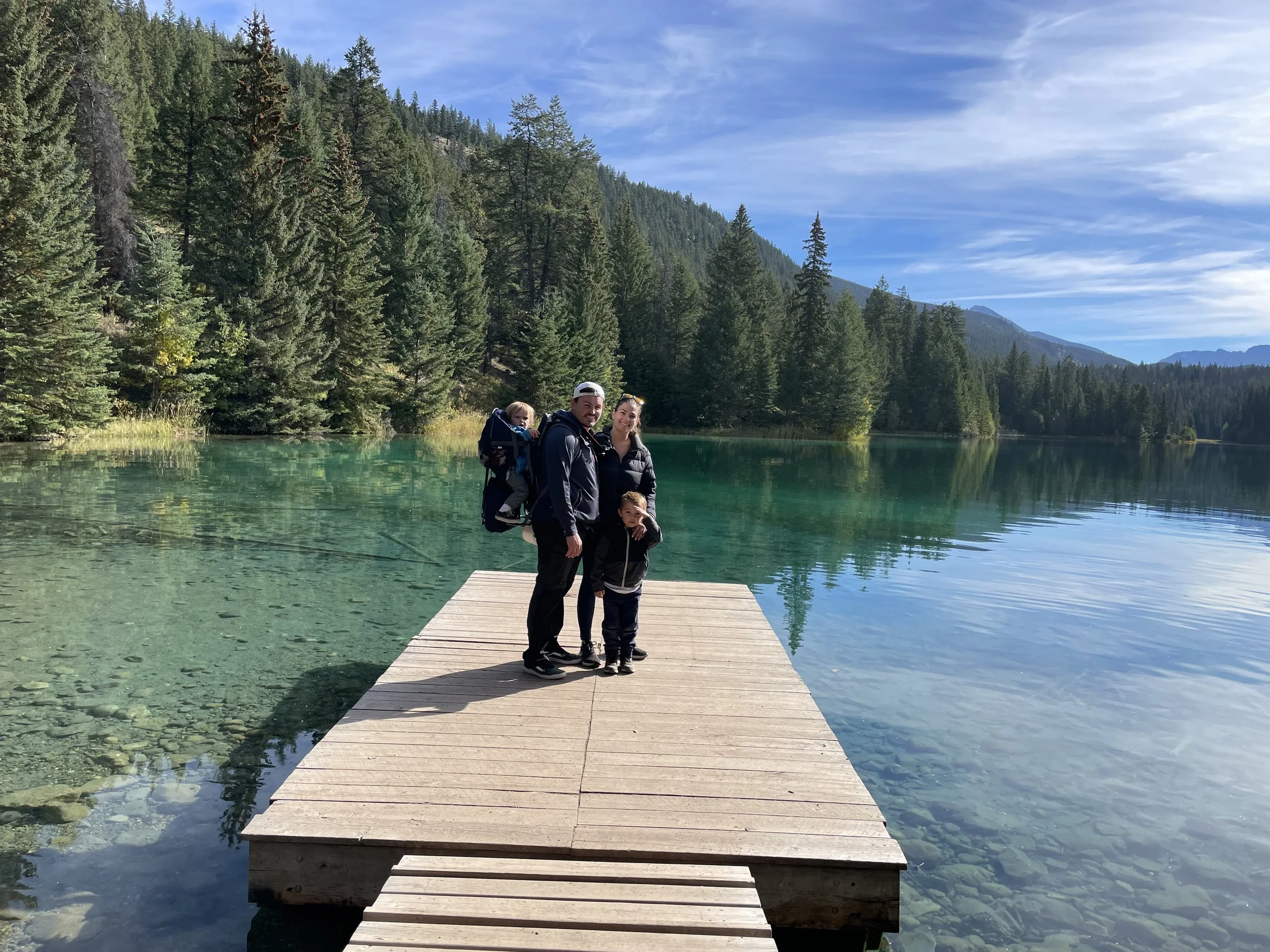 Lors de notre deuxième jour sur place, nous sommes allés nous balader dans la vallée des 5 lacs qui comme son nom l’indique permet de découvrir 5 lacs, tous de couleurs bleues et vertes, nous en avons pris pleins les yeux et la balade fut assez ludique pour Zack qui comptait les lacs sur la route, un bon moyen de continuer à marcher !