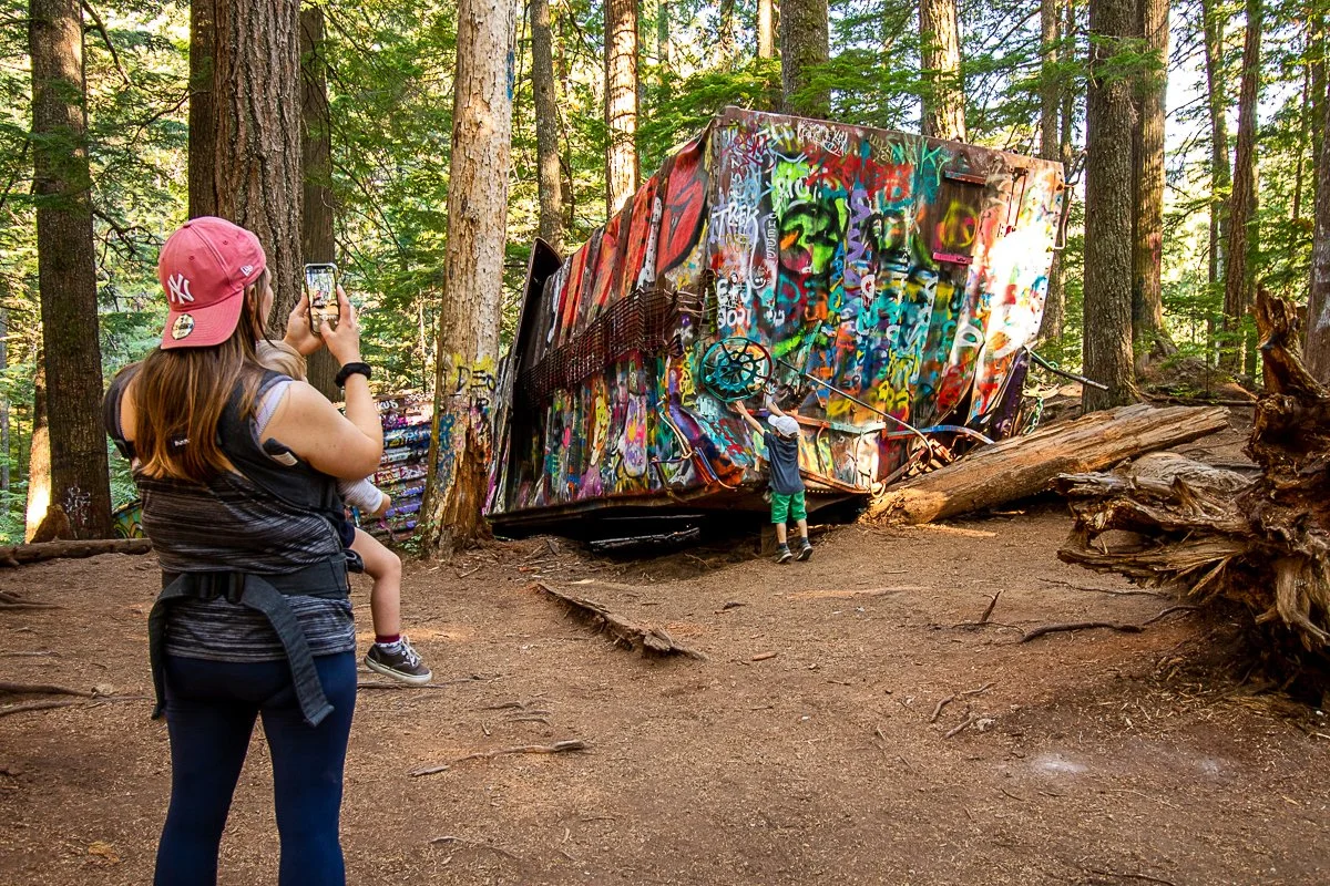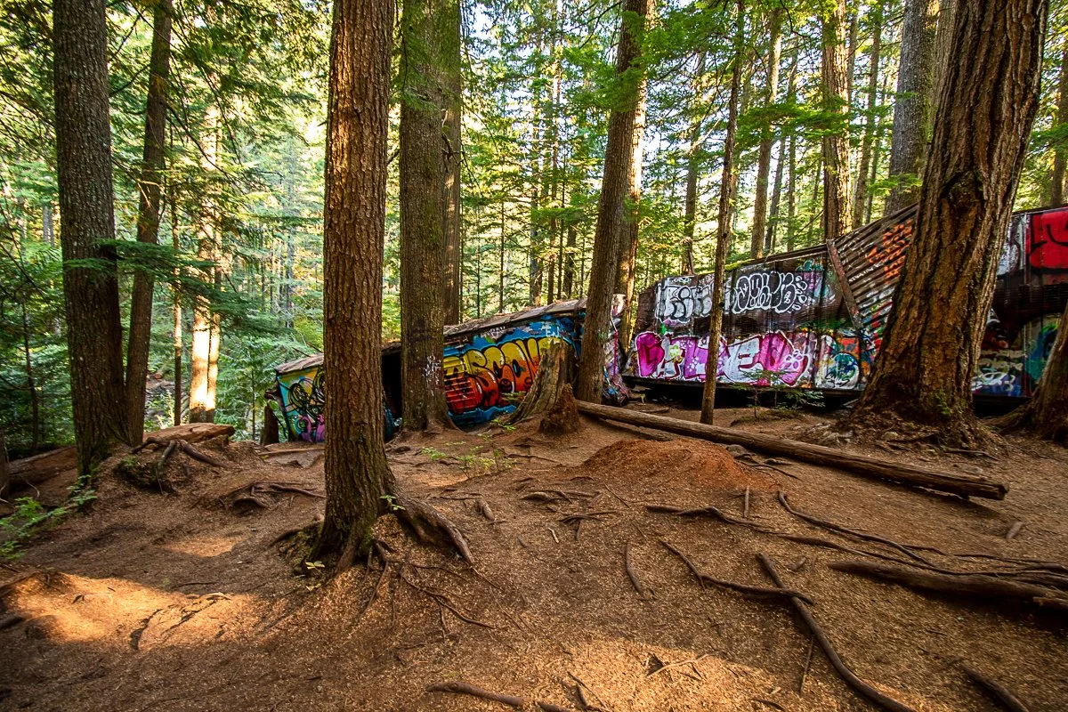 Nous avons fait une randonnée connue dans la région car on y trouve des wagons d’un train qui a déraillé en 1956. Cette randonnée permet de se balader dans la forêt et la balade est très jolie. Encore une fois, notre présence sur le territoire des ours est bien indiquée et l’on peut même apercevoir des traces de griffes sur le tronc des arbres.