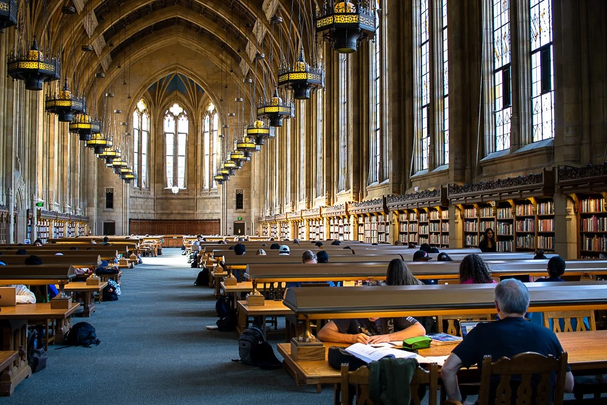 Mercredi 12 octobre : pour cette première journée pleine à Seattle, nous partons pour la matinée faire le tour du campus de la University of Washington où j’ai passé 4 mois en 2011, j’en garde un souvenir fantastique. C’est une université à l’américaine comme on l’imagine avec des bâtiments anciens et grandioses. Nous avons en plus garé la voiture dans le quartier des maisons de fraternité et sororités ce qui nous a mis directement dans l’ambiance. Nous avons parcourus le campus à pied en nous baladant à travers les différents bâtiments. Nous avons fait un arrêt sur le Red Square, le quartier central et avons été jeter un coup d’oeil à l’intérieur de la Suzzalo library, la bibliothèque centrale de l’université qui semble tout droit sortie de la saga Harry Potter. Au rez-de-chaussée de la bibliothèque se trouve un starbucks! Nous sommes bien à Seattle. Pour ceux qui ne le savent pas, le starbucks coffee vient de Seattle où le premier coffee shop a ouvert en 1971 près du marché de Pike Place.