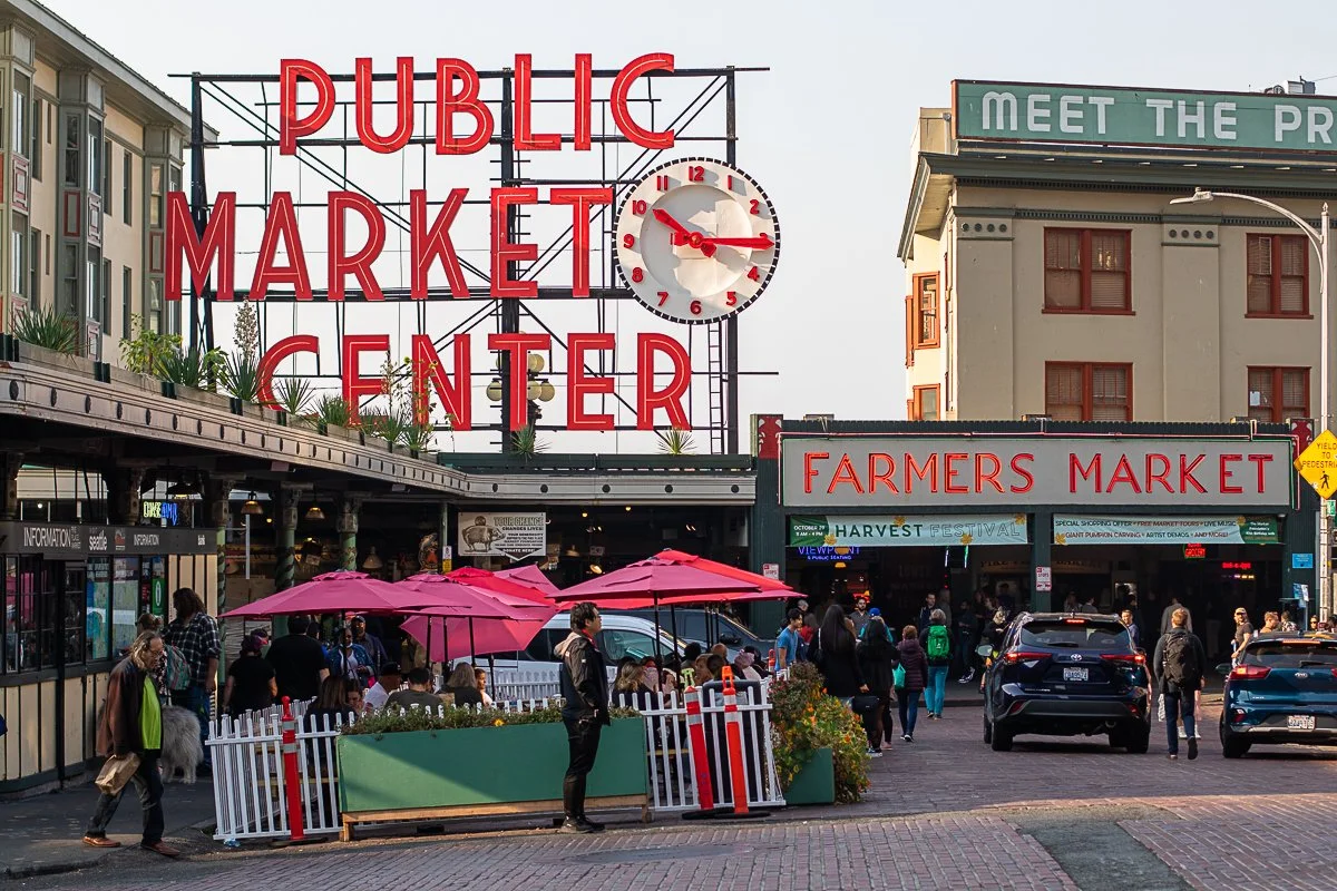 Samedi 15 octobre : ce matin, nous prenons la direction du Pike Place market, célèbre marché de Seattle où l’on peut notamment voir des poissons voler dans certains stand de poissonerie. Le marché est très animé et on y trouve des stand d’un petit peu tout. Juste à côté se trouve le Gum Wall. Il s’agit en réalité non plus d’un seul mur mais d’une ruelle dont tous les murs sont remplis de chewing-gum. C’est une tradition qui a débuté au début des années 1990. Les spectateurs d’un théâtre voisin qui attendaient dans la rue ont commencé à coller leur chewing gum au mur pour passer le temps….ce n’est pas l’endroit le plus hygiénique mais c’est un endroit insolite à voir au moins une fois. Juste à côté du marché se trouve également le tout premier starbucks coffee qui a ouvert en 1971. Forcément, il y a une longue file d’attente. J’y avais été en 2011, sa spécificité est qu’il n’y a aucune place assise. Nous continuons notre balade dans le downtonwn et descendons jusqu’au quartier Pioneer Square où se trouve la Smith Tower. C’est le tout premier gratte-ciel de Seattle, érigé en 1914. Nous avons fait une pause dans un coffee shop juste à côté dans lequel nous étions les seuls à ne pas porter le maillot des Mariners, l’équipe de baseball de Seattle. Il y a un match quelques heures plus tard et le stade est juste à côté.